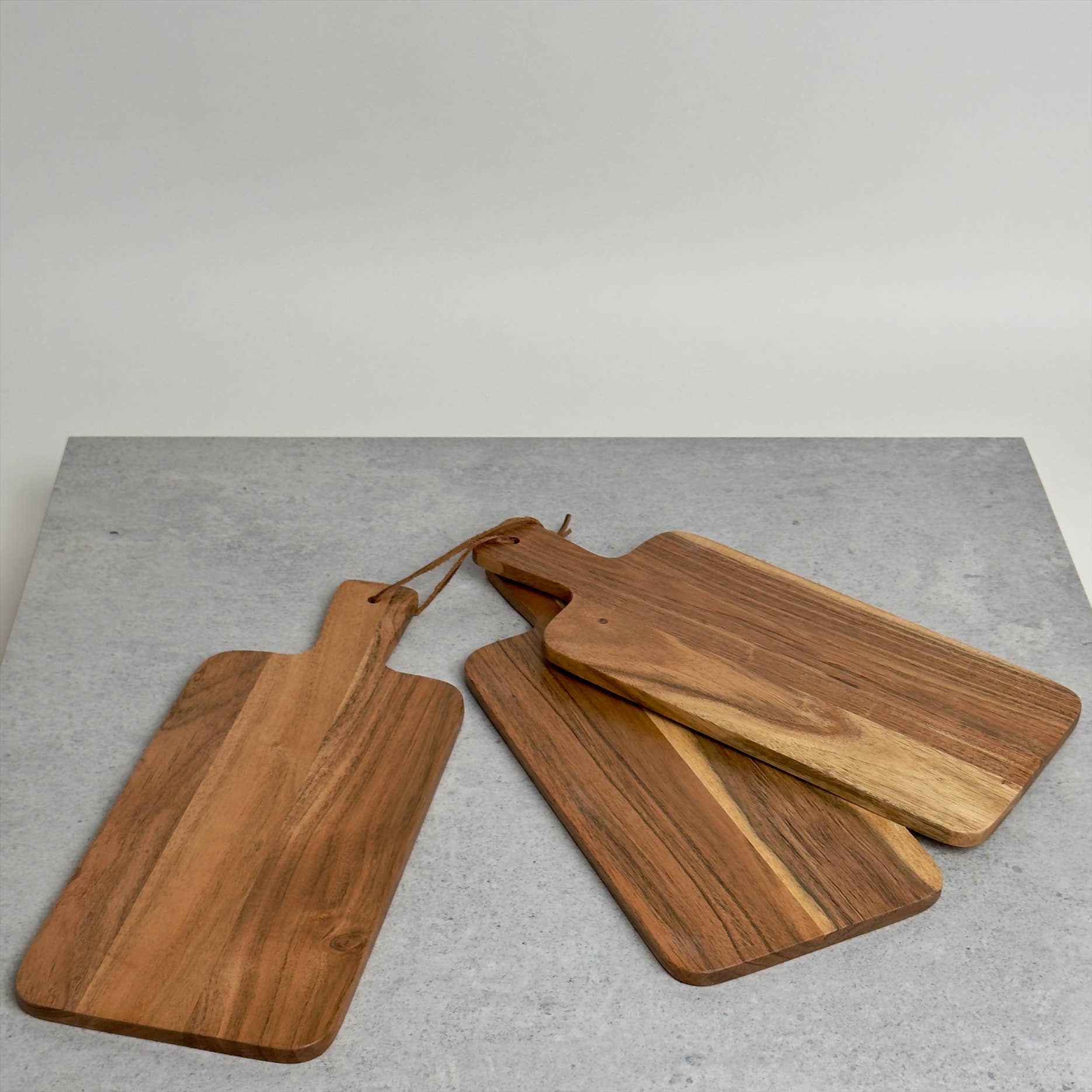 Sold as a set of three boards. Elevate any gathering with our Acacia Wood Cheese Board, a beautifully crafted trio designed for charcuterie lovers, home entertainers, and anyone who enjoys thoughtful, stylish hosting. Each board is made from rich, durable acacia wood, showcasing its natural grain and warm tones—perfect for creating an elevated charcuterie spread, displaying appetizers, or serving small bites during holiday parties and special occasions. This versatile set makes an ideal holiday gift, hostess gift, or wedding gift. Whether customers are preparing a cozy night in, stocking up for the entertaining season, or looking for a unique yet practical gift option, these boards bring both beauty and utility to the table.