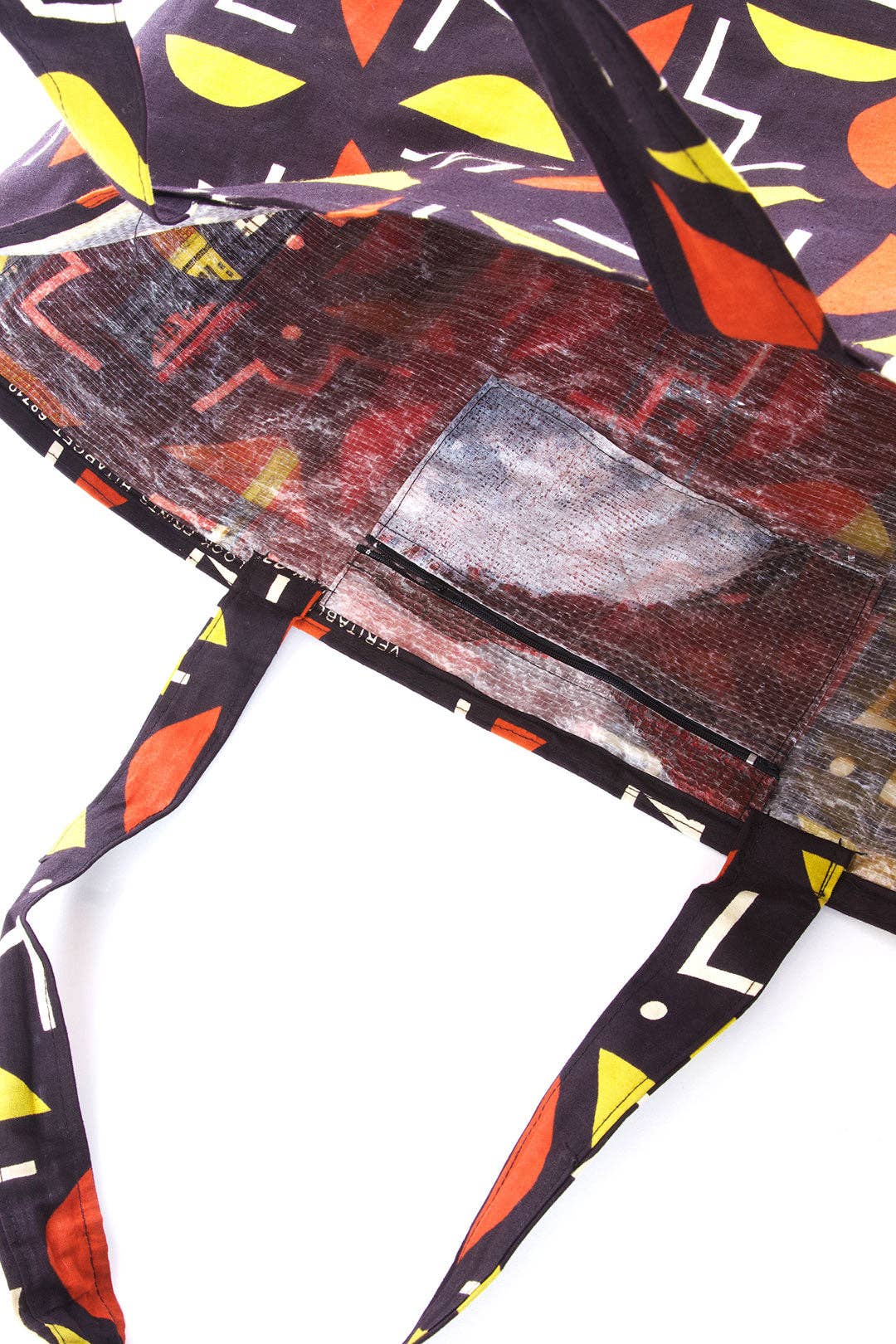 Senegalese artisans craft these spacious cotton totes from assorted cuts of colorful printed cotton wax cloth lined with plastic rice sacking. Each bag is completely unique, and features two carrying handles and an interior zippered pocket. Sold singly in assorted colors and patterns. Because these are handmade items, each will vary slightly. Dimensions: 18"L x 8"W x 18"H (handles have 12" drop) Crafted from: Cotton fabric, woven plastic sacking