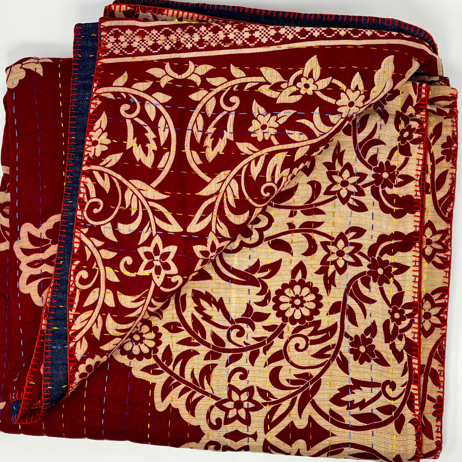 Made with upcycled denim and sari with rainbow stitching, this soft and cozy reversible bedding is just what you need to bring color to any bedroom. The rugged denim also makes this PERFECT for a picnic blanket when the weather is warmer! Shams with coconut button closures sold separately, while supplies last. Quilt has no added filling. Colors my vary from pictured.