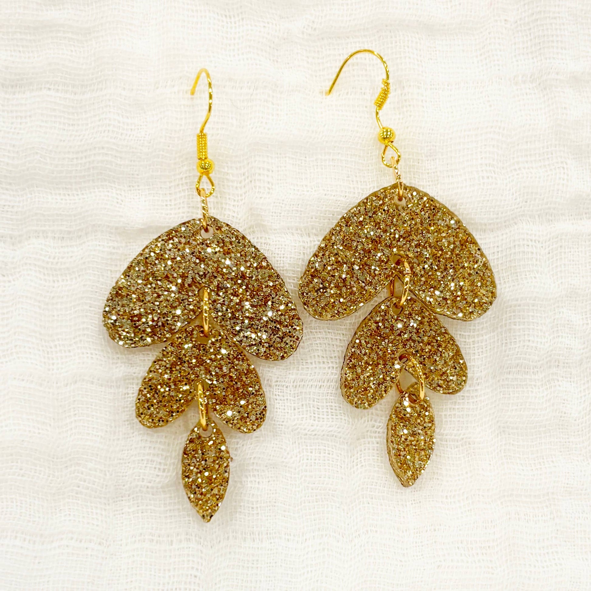 I love these glittery gold Evia Earrings! Perfect for the holidays or any time of year.