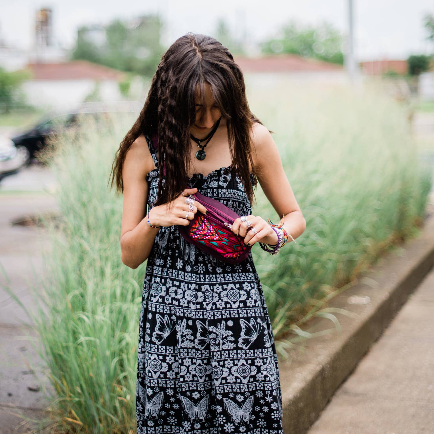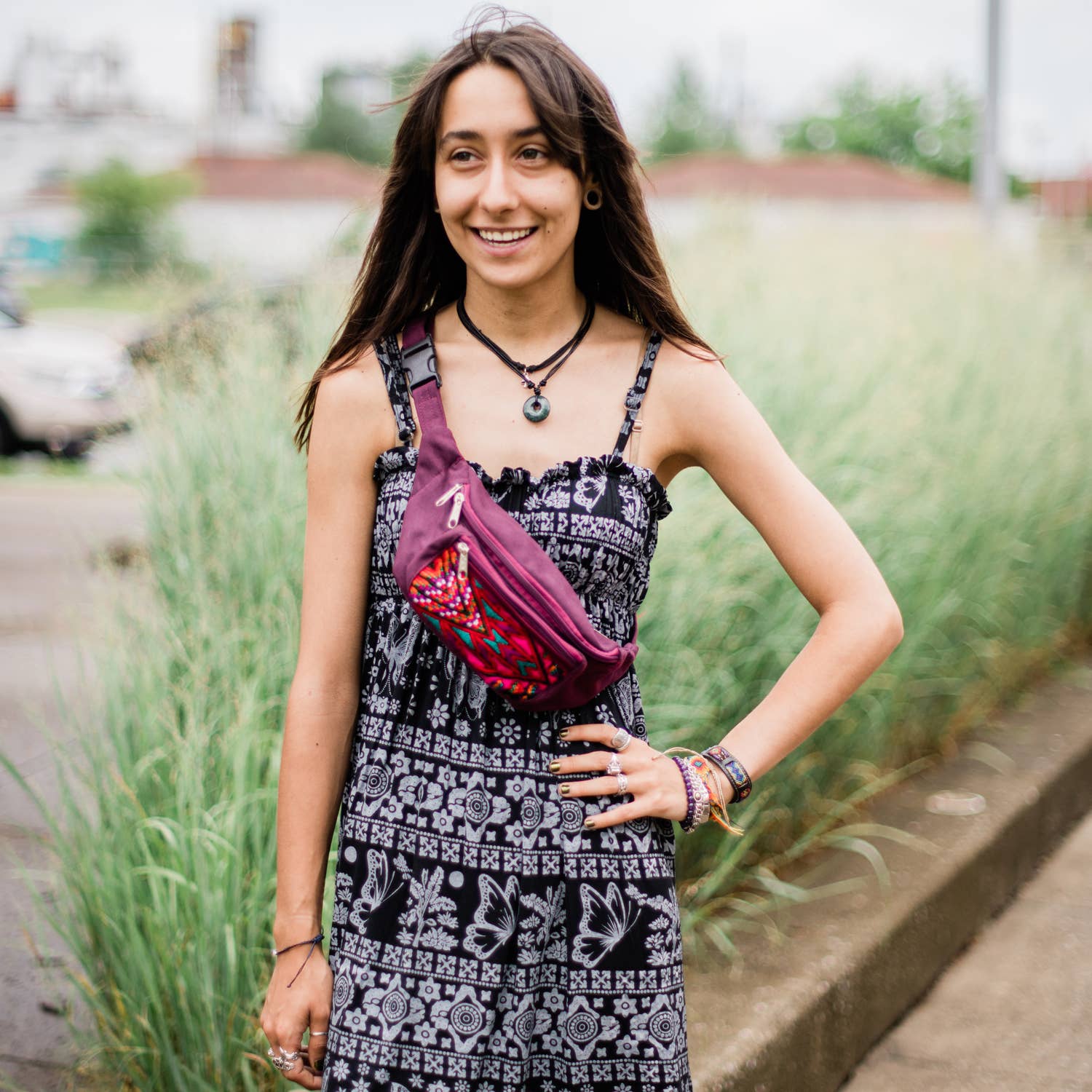 Limited Item. The perfect fanny pack does exist: Meet the Fiesta Fanny Pack! Made of synthetic suede, this fanny pack is embellished with assorted colors and designs. Complete with a front zipper pocket, main zipper pouch, and a back zipper, this purse will allow you to carry everything you need plus some extras!