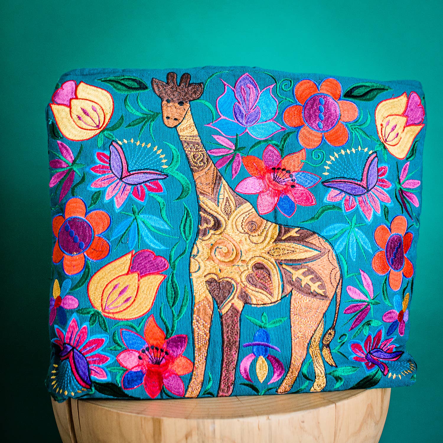 These beautifully embroidered giraffe tote bags are not only a great statement piece, but a practical everyday bag. Each bag is fully lined with an inside zippered pocket and padded shoulder straps. Design is on the front side only. Comes in assorted designs and colors.