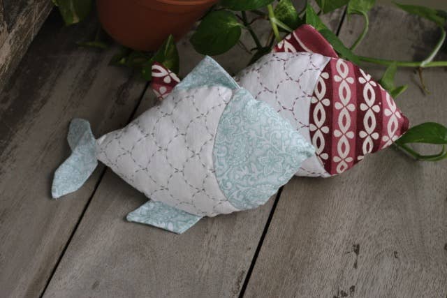 These charming stuffed fish are full of character and hand sewn by the women of Basha using repurposed new sari fabric, turning textile waste into something whimsical or fun, perfect for the beach house, sea collectors, or anyone who wants a bit of handmade fun on their shelf.