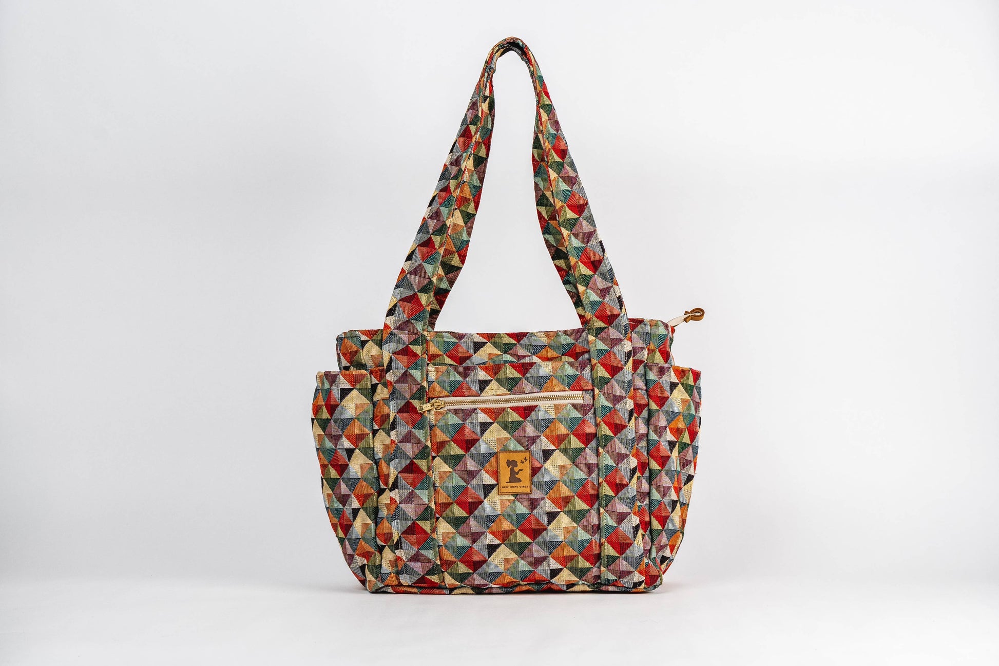 Our Travel Totes are made from sturdy fabrics and are a great travel companion - whether you are out and about for the day or headed to a far-off destination. They have a zipper closure across the top, an interior zippered pocket, and a small zippered pocket across the front of the bag. There are also two open pockets on the end of the bag and another open pocket on the front side of the bag. On the back of the bag is a trolley sleeve, making it a great option for pairing with your favorite suitcase.