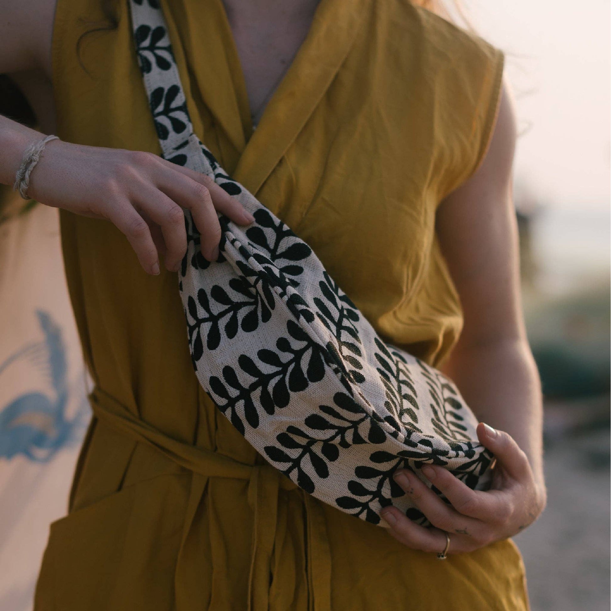 The slouchy, comfortable sling bag that fits so much more than you think. With a fully adjustable strap to get that perfect fit while carrying all your everyday essentials hands free. Fully lined with cotton canvas and with two slip pockets to keep you organized. This is not just any sling bag, this piece has been handcrafted slowly and ethically from start to finish - from hand spun, hand woven, hand block printed canvas - this is a truly special piece to be treasured forever.