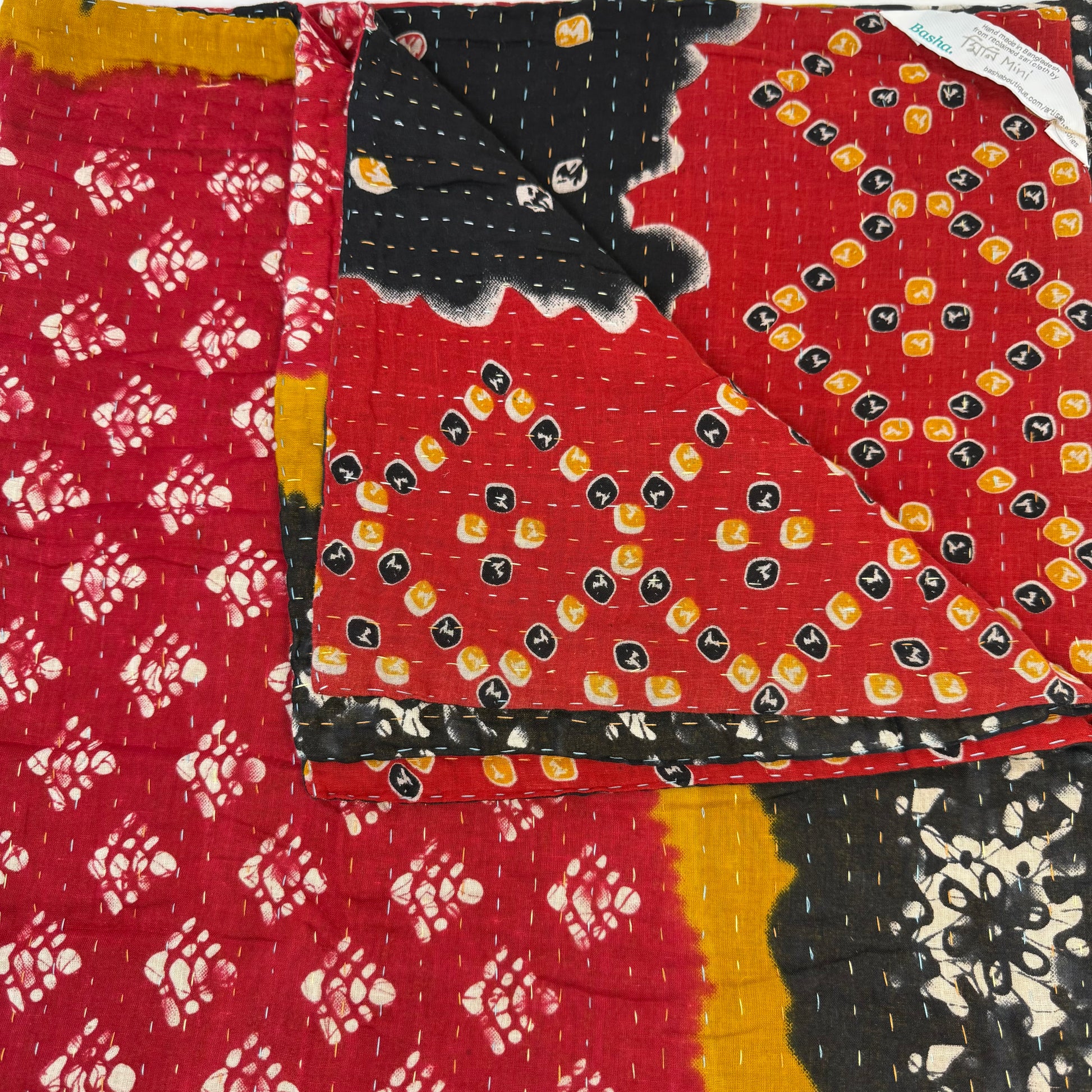 Indulge in the ultimate personal blanket! This buttery-soft sari throw is made from upcycled cotton and hand-quilted by skilled artisans. The recycled fabric offers a unique and diverse visual appeal, with each throw featuring a cohesive and harmonious blend of colors and motifs from a singular sari. Elevate the aesthetic of any space with these beautiful and sustainable throws! Measuring approximately 80" by 36", this is the perfect blanket not to share!