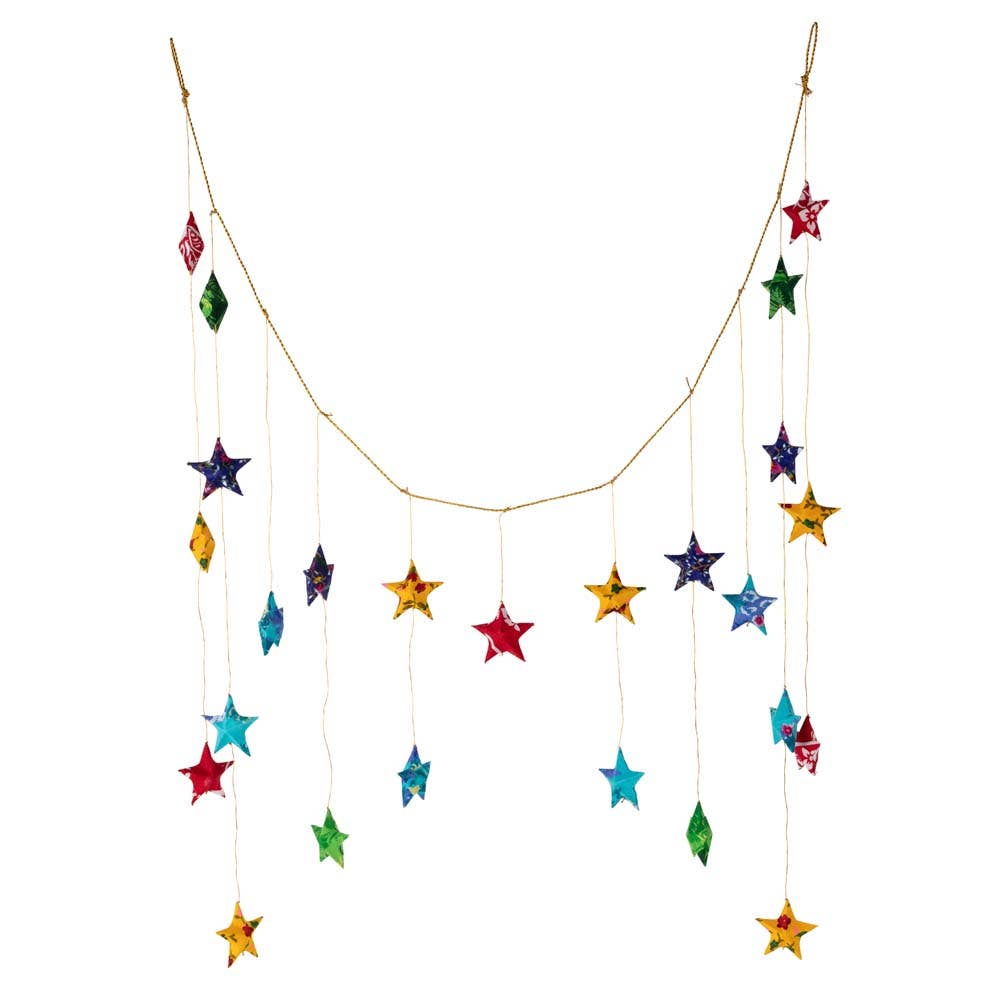 Brighten up your window with the Recycled Sari Star Valance. Handcrafted by artisans with Prokritee, an organization that provides jobs and skills training for women in under‒resourced communities in Bangladesh.