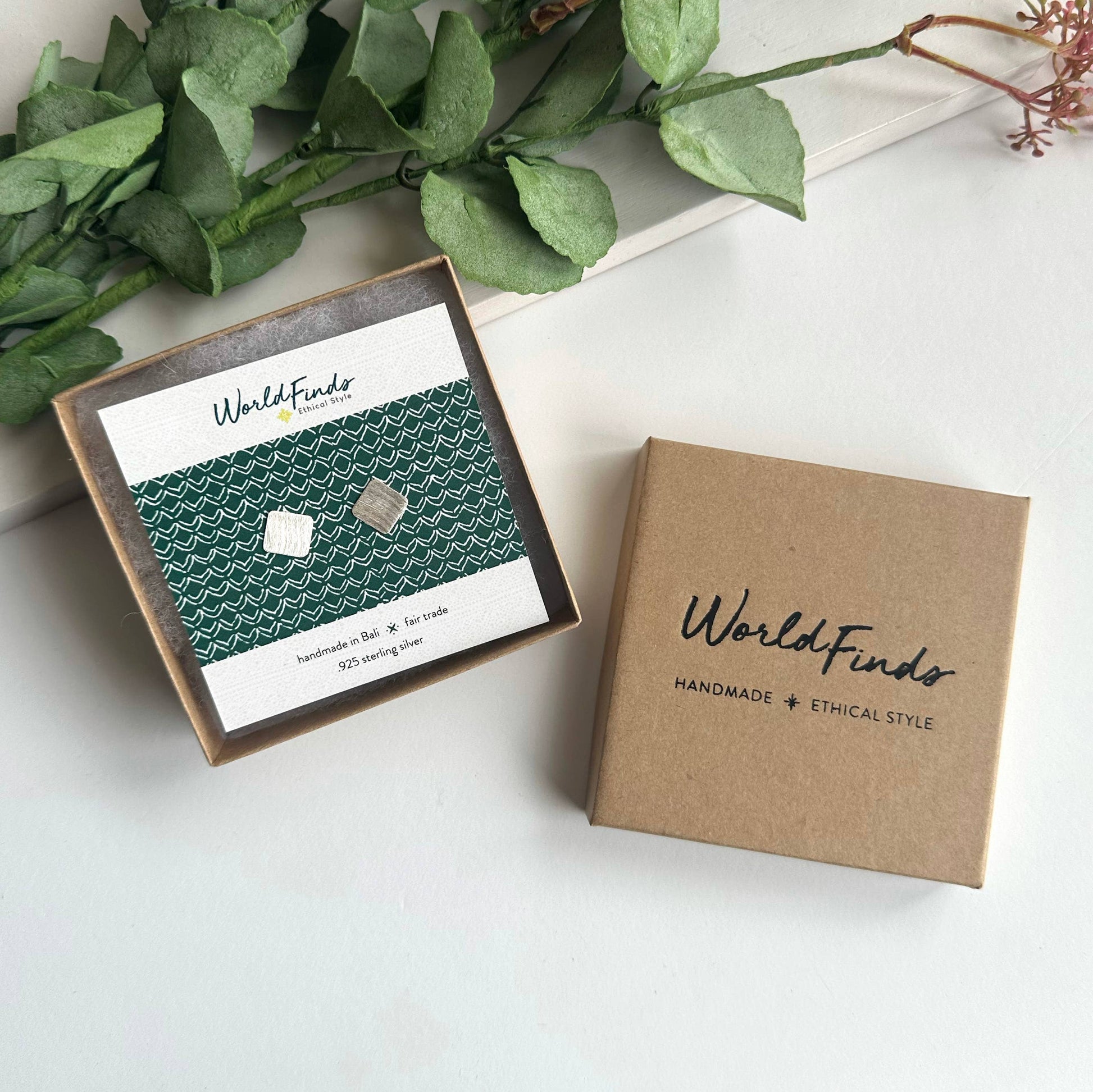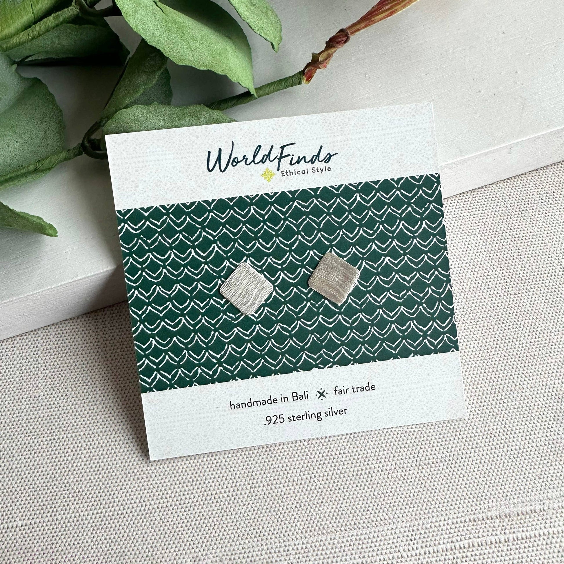 Expertly crafted by women artisans in Bali, these square sterling silver posts add a sleek and minimalistic touch to any outfit.