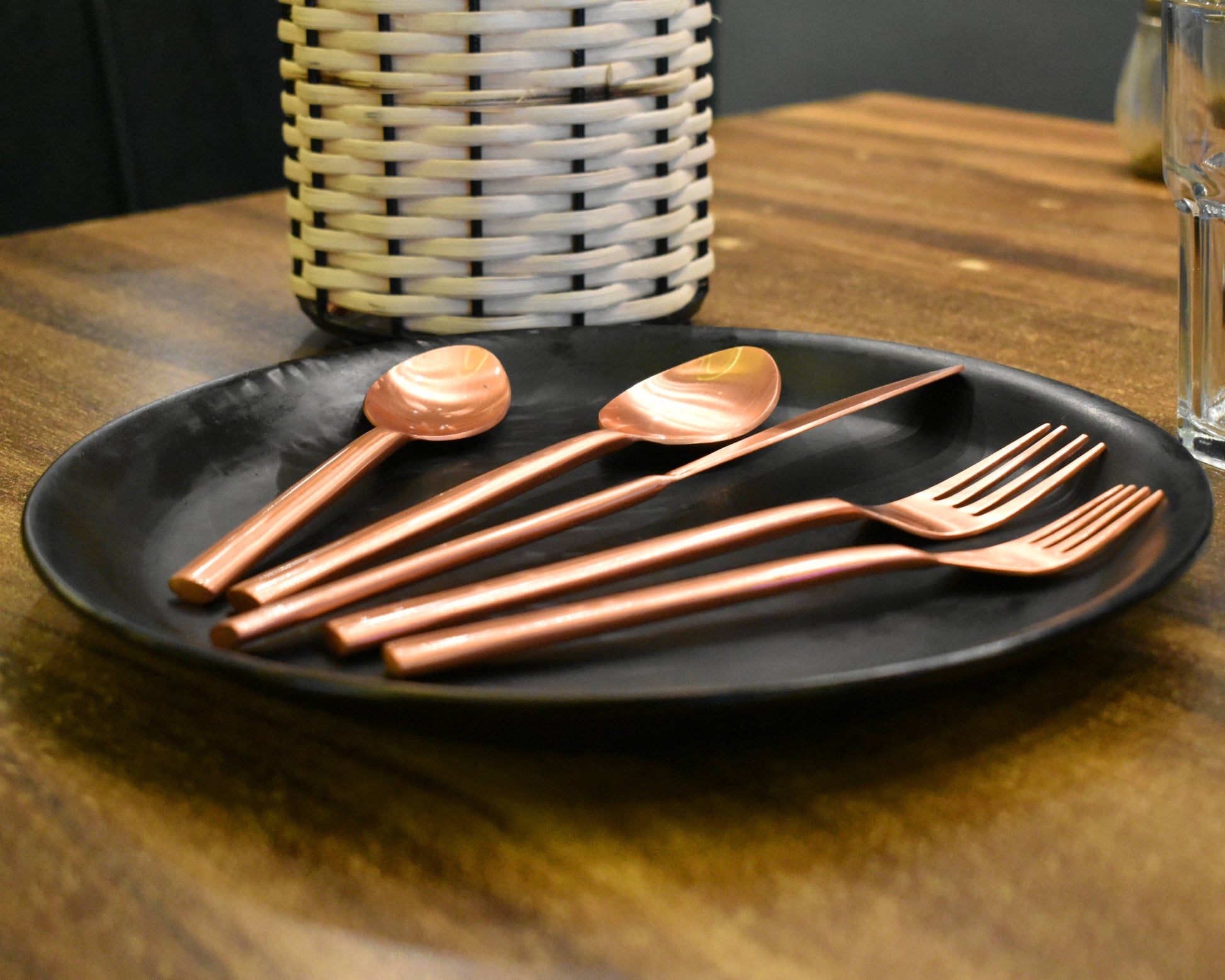 Whether you're hosting a dinner party or upgrading your daily tableware, this cutlery set brings a sophisticated charm to both modern and traditional settings. Also makes a stylish and thoughtful gift for housewarmings, weddings, or festive occasions. Add a touch of luxury to your table with this elegant 5-piece Stainless Steel Cutlery Set, featuring a warm, glossy copper-plated finish. Expertly crafted from premium Copper-plated stainless steel, each piece offers exceptional durability, rust resistance, and everyday elegance.