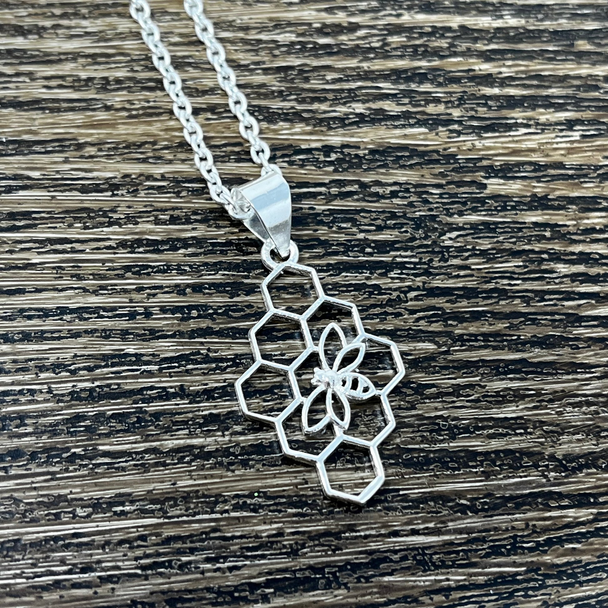 Need a buzz-worthy piece to add to your collection? Look no further than this silver-plated brass necklace, featuring a charming bee perched on a honeycomb-shaped pendant. With a lobster clasp and adjustable length of up to 24", it's the bee's knees (quite literally)! Pendant measures 1".