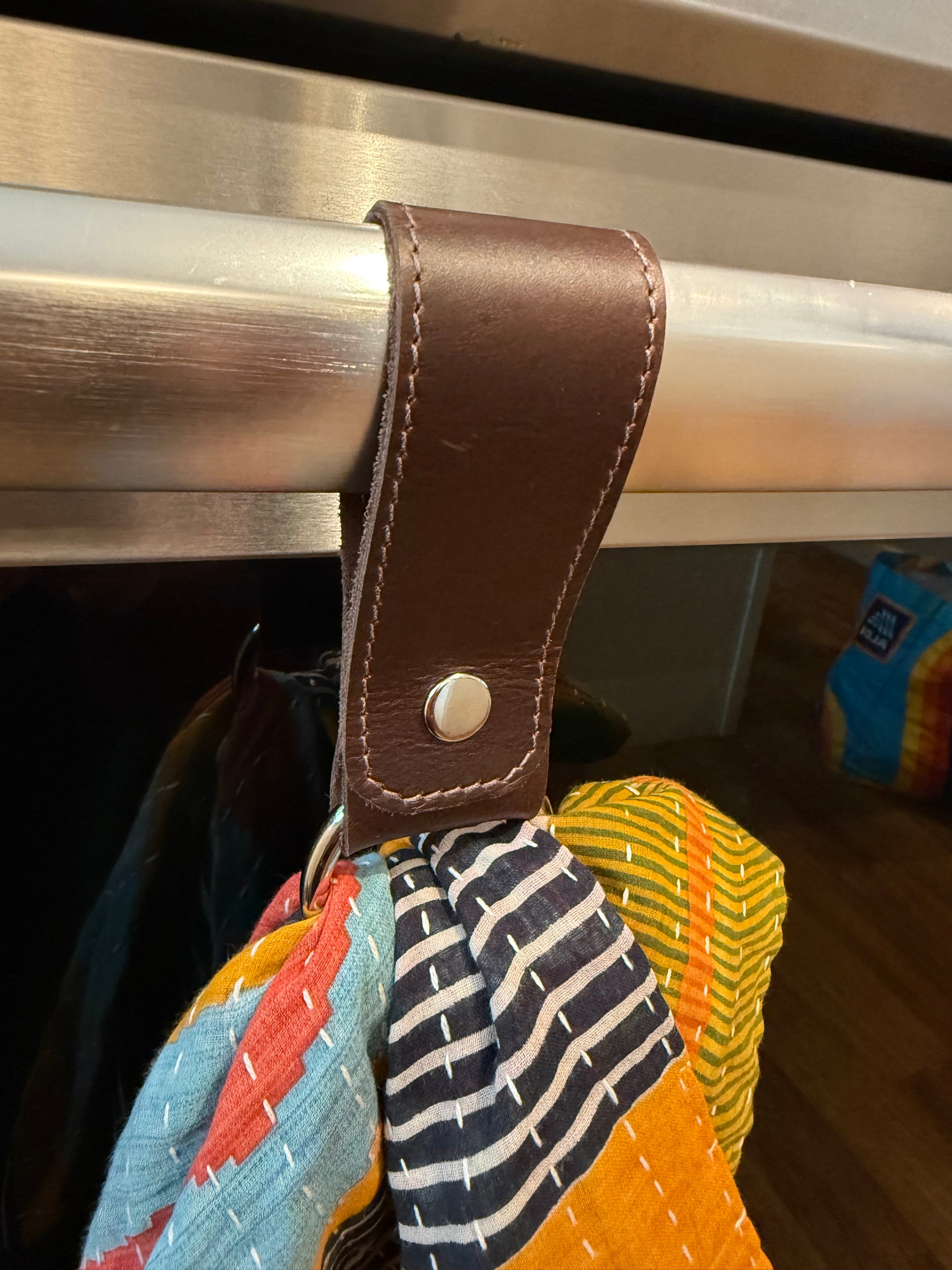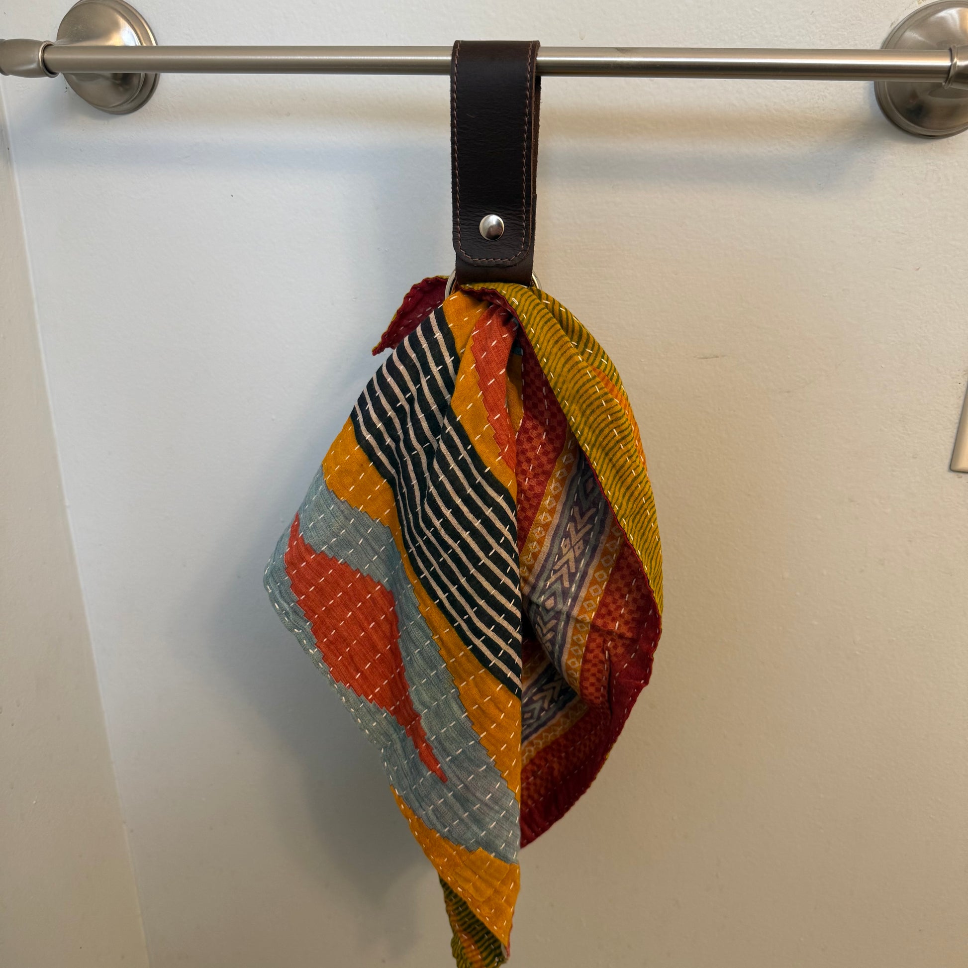 Keep your towels secure and stylish with the Towel Saver. Crafted from full grain leather, this handy accessory features a snap closure and a brass ring, ensuring your towels stay in place wherever you display them. Enjoy a tidy space and easy access to your towels.