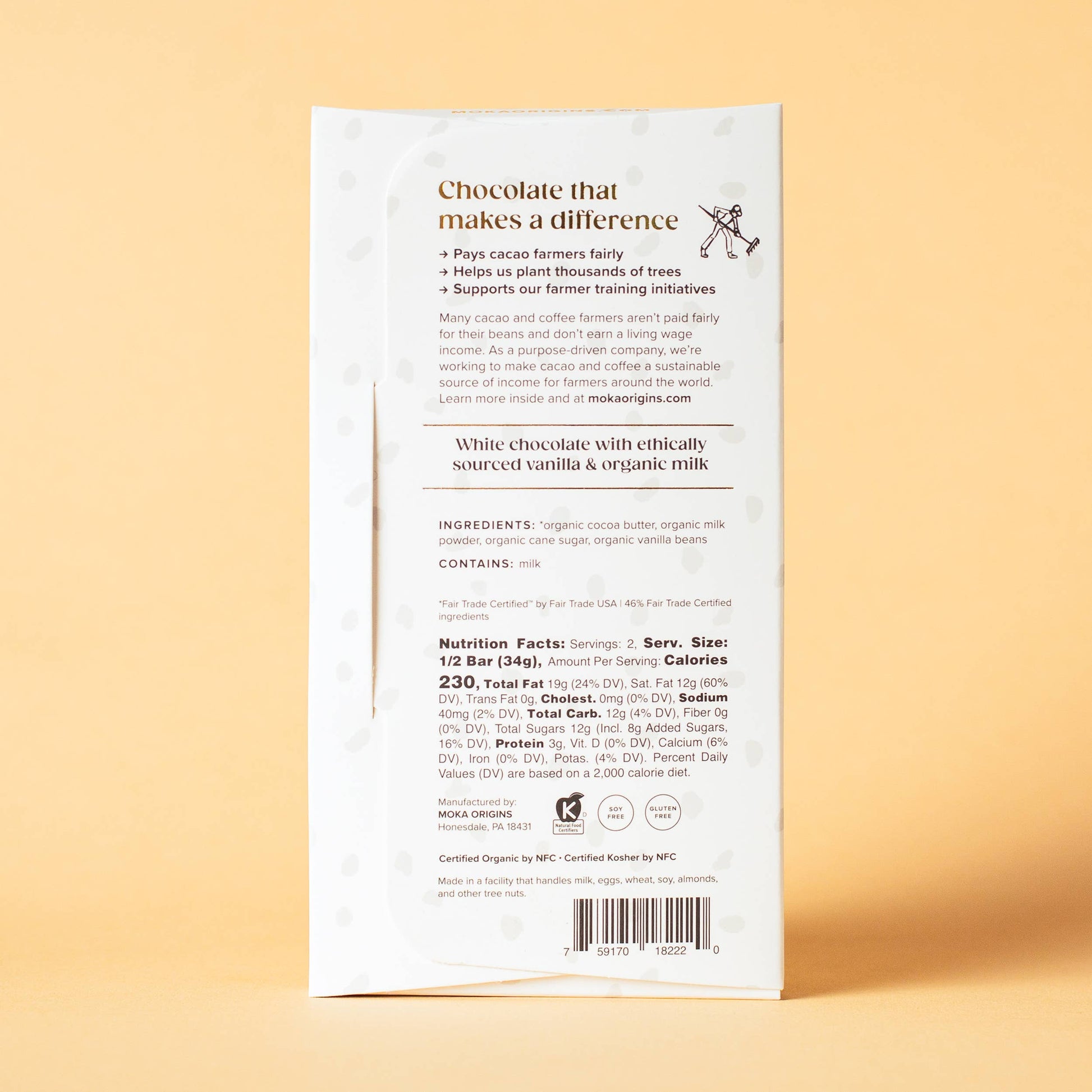 Ultra-smooth, creamy white chocolate made with direct-trade vanilla beans & organic whole milk.